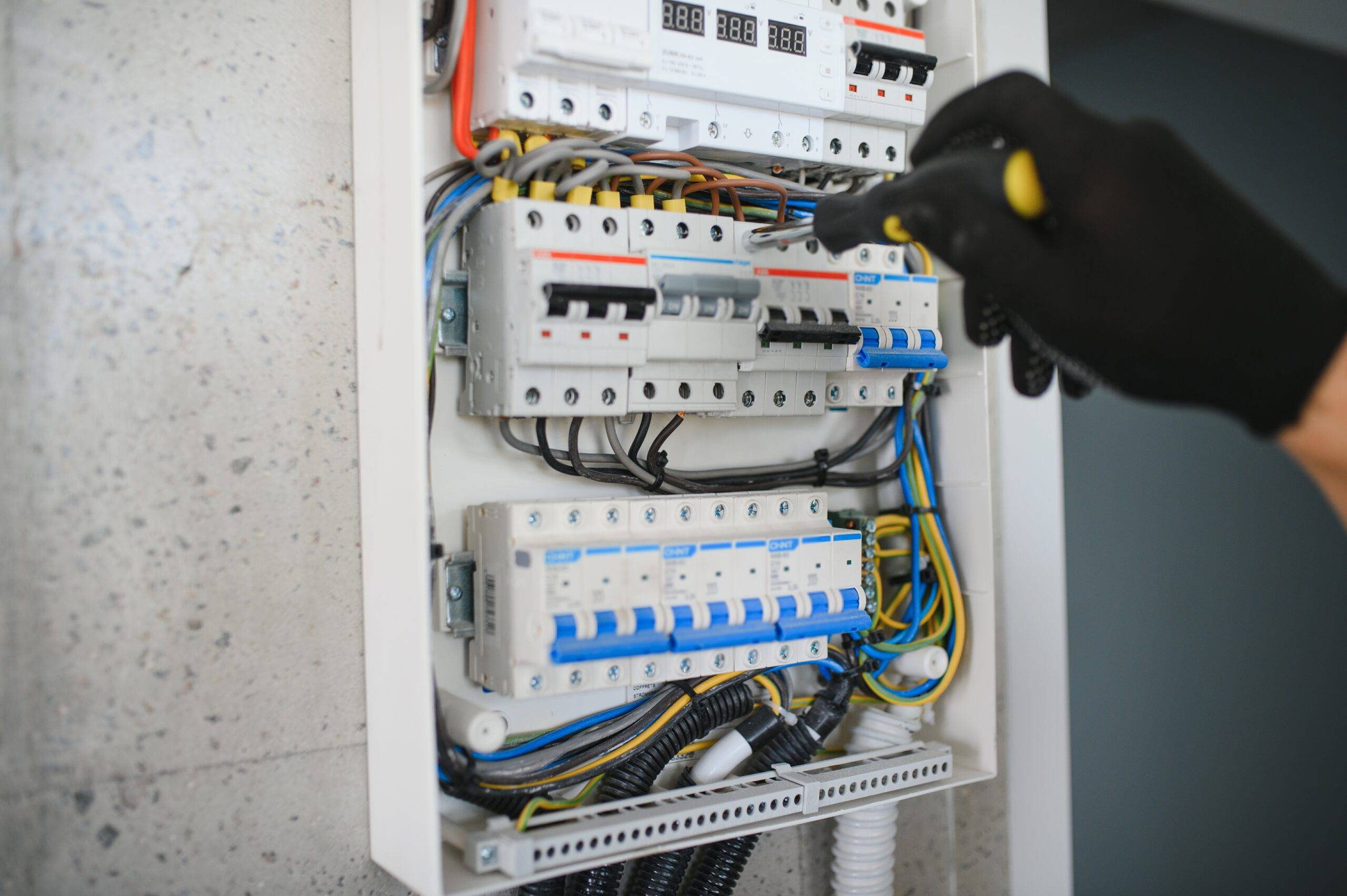 Wir bieten Ihnen maßgeschneiderte Elektroinstallationen für Neubauten, Renovierungen und Gewerbe. Mit einem Fokus auf Qualität und Sicherheit sorgen wir für eine schnelle und zuverlässige Umsetzung Ihrer Elektroprojekte.